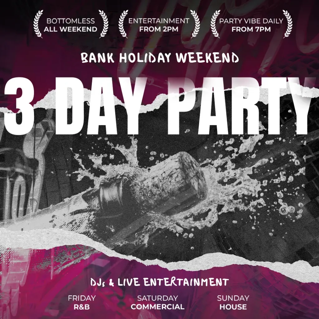 You can book drinks tables or go big with VIP bottle tables with premium spirits if you’re feeling extra. Big tunes, big bottles, big bank holiday behaviour.